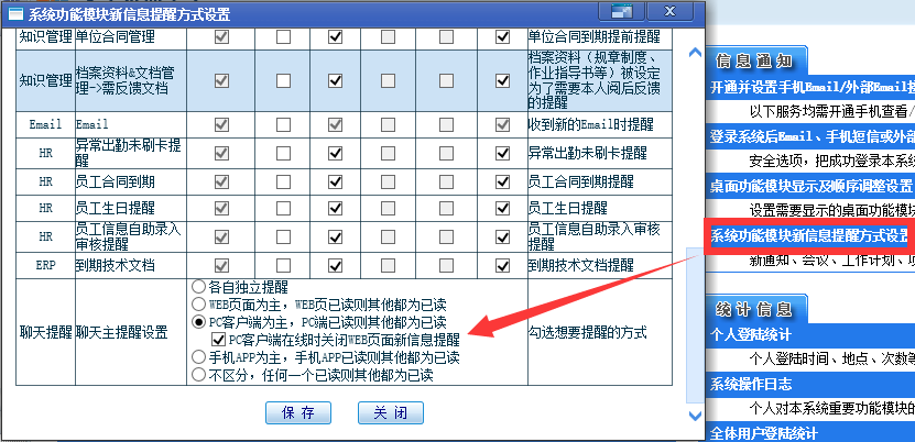 如果安装使用了PC客户端,建议没有操作的时候,应该彻底关闭点晴OA的所有WEB页面,否则点晴OA的WEB页面可能还是会弹出新信息提醒,原因是WEB、PC客户端、手机APP在接收新信息时,并没有优先级设置,谁先收到新信息,谁就会弹出提醒,导致其他终端不再提醒!所以就算设置为“不区分,任何一个已读则其他都为已读”,如果同时打开了手机APP、PC客户端、WEB页面,也会出现有时是WEB弹出新信息提醒,有时是PC客户端弹出新信息提醒,反而更乱。