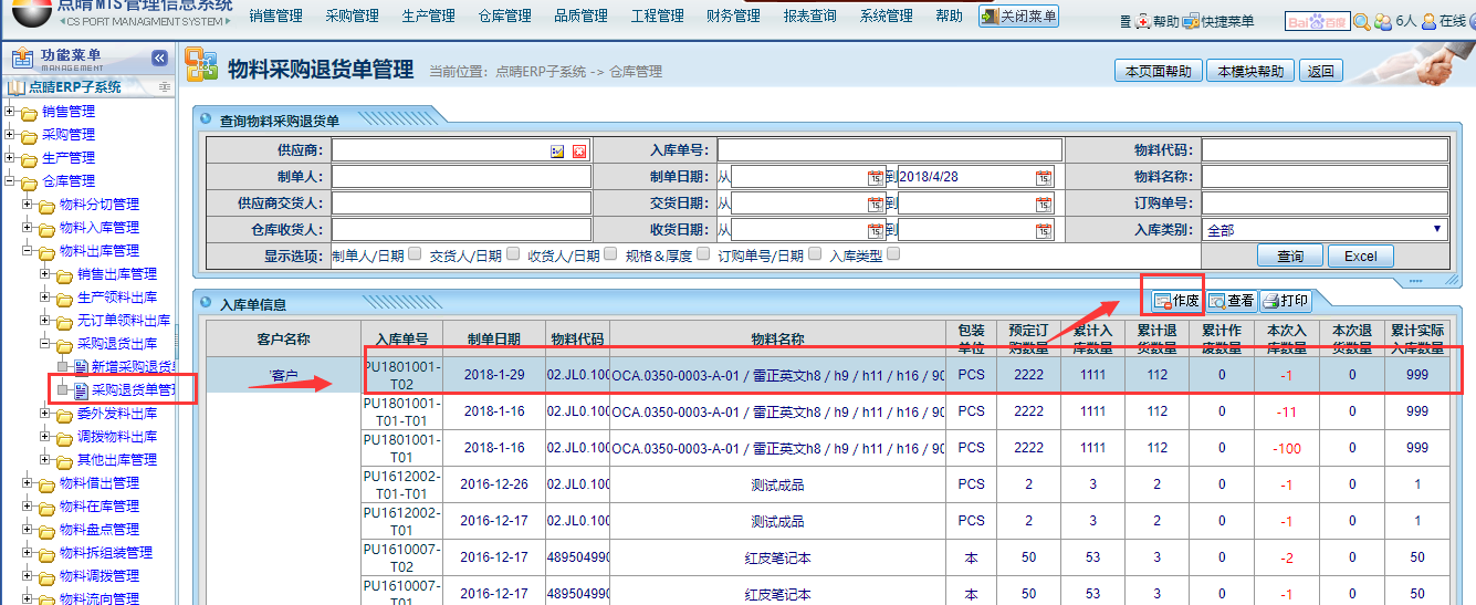 [点晴模切ERP]红字采购退货单如何作废驳回