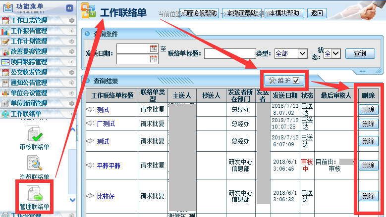 :工作联络单发送后才发现有错误,请问要怎么才能修改啊?能不能撤回啊?![]() 工作联络单可以视为一种特殊的Email,一经发出,就无法直接撤回,因为对方已经看到,并可能已经按照联络单上的内容开始进行某些作业,如果无缘无故被撤回,可能会导致纠纷或严重的后果。 由于在实际管理中,的确有时候需要撤回发错的工作联络单,所以系统预留了一个口,可以删除已经发出的工作联络单,这个权限是给网管专有的。 为了合理使用这个功能,为各方保留删除该工作联络单的证据,网管应该在工作流管理模块中创建一个工作联络单删除申请流程,该流程可以设置为自由流程,审核人是工作联络单的相关接收人,归档人是网管,这样各方同意后,网管归档时,找到这份工作联络单删除即可。或者要求发送另外一个删除此联络单的新工作联络单申请,抄送给那份联络单的相关人员,主送人是网管,网管收到后,将这份工作联络单删除掉,这样也可以保留下删除工作联络单的证据。
