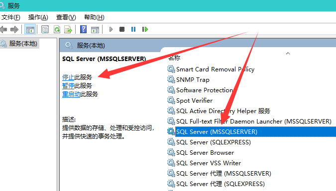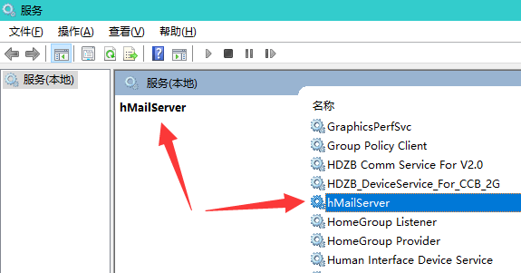 如果希望直接备份点晴安装目录D:\clicksun\和点晴数据库clicksun,必须先在Windows系统中找到两个服务(hMailServer、SQL Server)先停止: