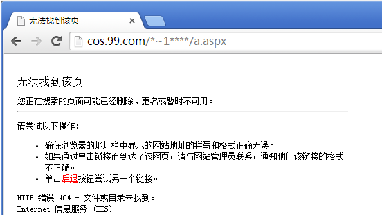漏洞的利用,需要使用到通配符。在windows中,可以匹配n个字符,n可以为0. 判断某站点是否存在IIS短文件名暴力破解,构造payload,分别访问如下两个URL: