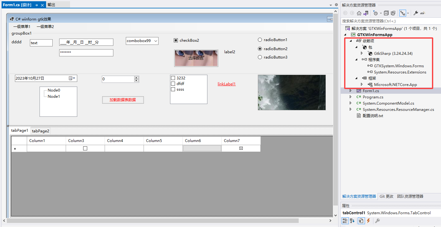 一、背景:微软的.net core开发工具,目前来看,winform界面软件还没有打算要支持linux系统下运行的意思,要想让c#桌面软件在linux系统上运行,开发起来还比较麻烦。微软只让c#的控制台软件支持在linux运行。 二、解决方案:我想到的一个方案是自定义封装软件的System.Windows.Forms组件,把支持windows和linux的界面框架GTK封装进System.Windows.Forms中! 三、组件封装这个System.Windows.Forms是实现C#界面的关键组件,Form界面的所有控件都封装在这个组件里。在.net core环境里,这个组件在框架Microsoft.WindowsDesktop.App.WindownsForms下。当开发工程的输出模式是“windows应用程序”时,就会自动引用Microsoft.WindowsDesktop.App.WindownsForms,如果开发工程的输出模式是“控制台应用程序”时,工程不会引用Microsoft.WindowsDesktop.App.WindownsForms,也无法开桌面软件的界面。 为了兼容VS原生界面表单开发,我开发了这个组件GTKSystem.Windows.Forms,这个组件的控件类库命名空间和类名称沿用了原生System.Windows.Forms的类库名称,可以在原生开发的C#软件工程里,直接引用GTKSystem.Windows.Forms就能兼容运行。 四、技术开发目前实现的控件:Form、Button、CheckBox、CheckedListBox、ComboBox、DataGridView、DateTimePicker、GroupBox、Label、LinkLabel、MaskedTextBox、MenuStrip、MonthCalendar、NumericUpDown、Panel、PictureBox、RadioButton、RichTextBox、SplitContainer、SplitterPanel、TabControl、TextBox、TreeView。 以上控件都只实现了常用功能的属性和方法,事件主要实现了鼠标事件、验证事件、加载事件,还有很多平常不用的属性事件已经实现了接口,但是没有实现执行功能,主要是因为程序量太多,没有去做。对于有能力的开发人员,组件也是可以拿到相关的属性事件(如WidgetEvent)去实现需要的功能。 重写的类也很多,重点说一下这几个类:Bitmap、Image、System.ComponentModel.ComponentResourceManager、System.Resources.ResourceManager。这几个类是Form界面引用图像资源必需的。在控制台程序架构里,是没有Bitmap、Image类库的,而且ComponentResourceManager和ResourceManager都不能读取资源图像数据。我在GTKSystem.Windows.Forms里封装实现了Bitmap和Image类,实现了ComponentResourceManager和ResourceManager读取资源图像数据。 Bitmap和Image类除了常用属性外,新增属性Image.PixbufData存放图像数据,用于GTKSystem的使用。 ComponentResourceManager和ResourceManager主要是实现了GetObject方法,读取资源数据。 五、使用方法修改.net core的windows应用程序工程属性,把输出类型改为“控制台应用程序”,或者把windows窗体配置勾选去掉,配置变为<UseWindowsForms>false</UseWindowsForms>。 <PropertyGroup> 1、新建System.Resources.ResourceManager类 2、新建System.ComponentModel.ComponentResourceManager类 3、GTKWinFormsApp.csproj 4、引用GTKSystem.Windows.Forms、System.Resources.Extensions 5、GTKWinFormsApp\obj\Debug\netcoreapp3.1\GTKWinFormsApp.designer.runtimeconfig.json 六、使用效果:VS开发界面: