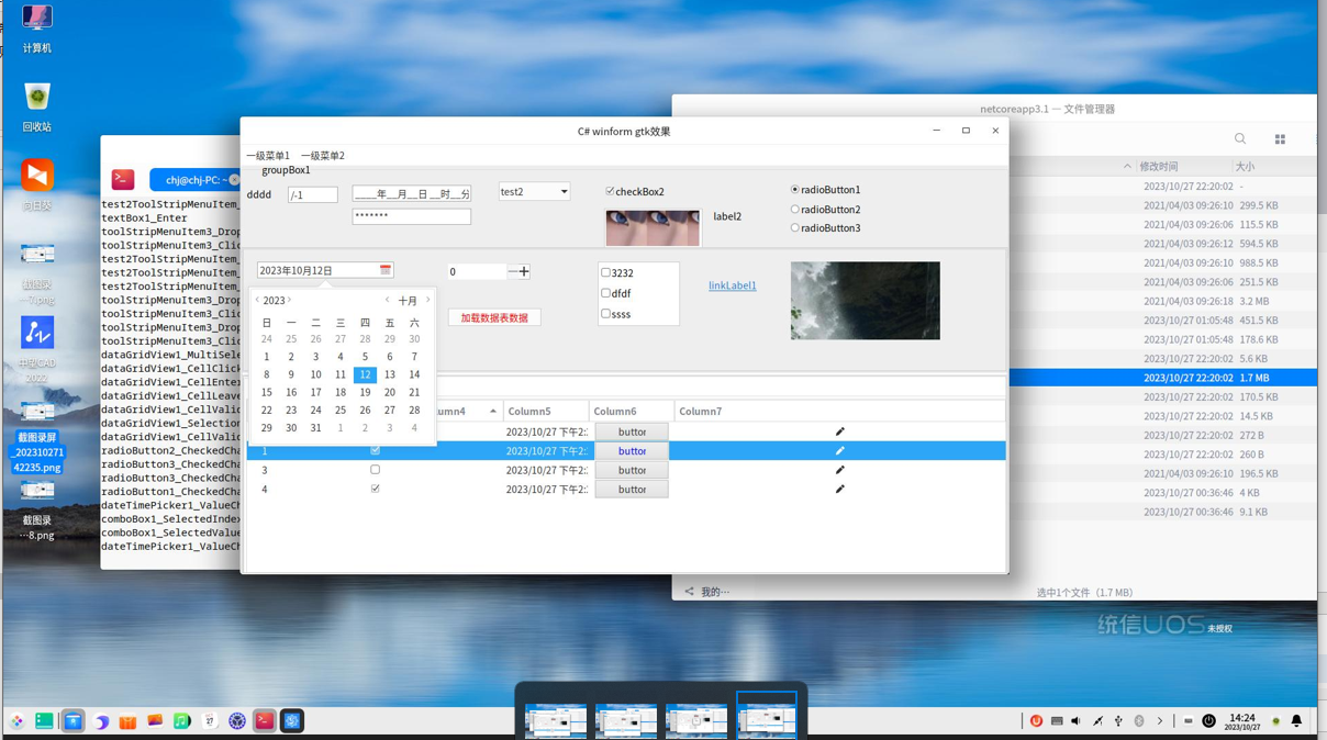 最后:此程序在统信系统(linux)上测试完美运行,实现一次编译,跨平台运行,显示界面样式与windows上运行的显示效果基本一样。 目前这个组件没有完全完成,但是主要功能和技术难点都已经解决,现公布出来给有需要的开发人员参考。 项目下载: https://files.cnblogs.com/files/easywebfactory/WinFormsAppDemo.zip?t=1698380585&download=true该文章在 2023/10/28 16:24:43 编辑过 |