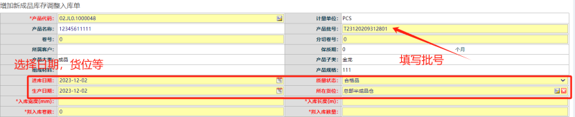 点晴模切ERP-库存调整-调整入库操作