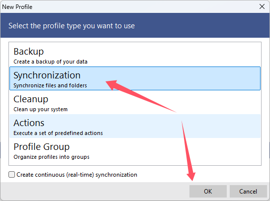 3、点击“Synchronization”,然后点击“OK”