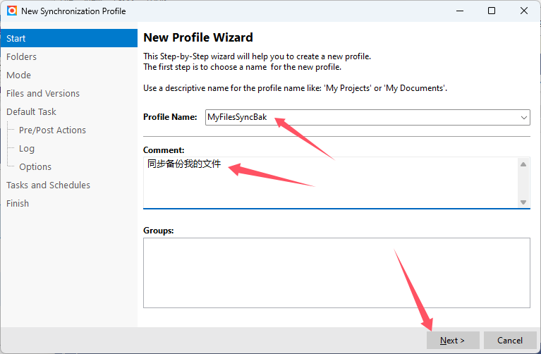 4、给备份任务命名,写上备注,然后点击“Next”