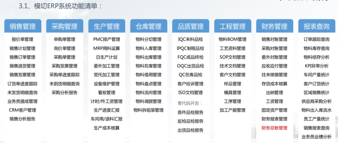随着模切行业的快速发展,越来越多的企业开始认识到数字化转型的重要性。在这个过程中,企业资源计划(ERP)系统成为了关键的一环。然而,在众多的ERP系统中,如何选择最适合模切行业的系统呢? 点晴模切ERP系统专为模切行业提供一整套信息化解决方案,从2004年研发至今已经有将近20年的研发和实施经验累积,其涵盖了销售管理、采购管理、 生产管理(MRP/排产/制程管控)、仓库管理(原辅料/成品/ 刀模)、工程管理( BOM/工艺/样品)、品质管理、财务管理 (对账/存货核算/总账)等,为模切企业提供全面的解决方案,助力模切企业实现智能决策。