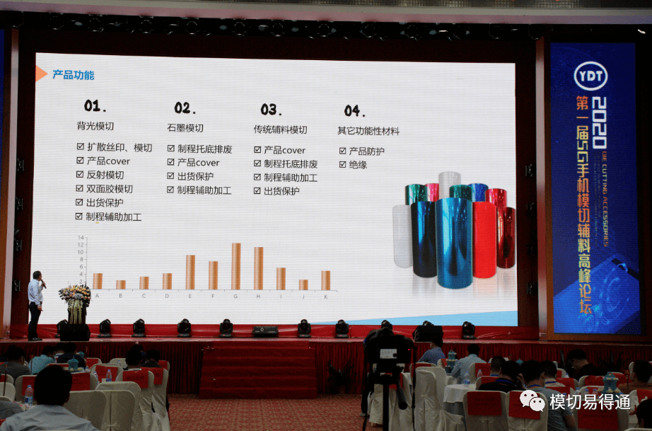 此次谢先生着重探讨了PET保护膜在5G通讯设备上的应用特点及背光模切、石墨模切、传统辅料模切、其他功能性材料在5G手机辅料应用。