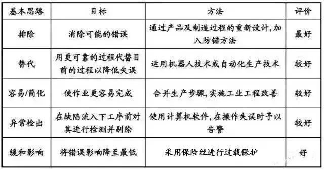 对操作人员进行大量的培训,管理者也一直劝诫操作人员要认真、努力、有“质量意识”,当错误发生的时候常常采取“扣工资”,“扣奖金”的形式。但是由于人为疏忽、忘记等所造成的失误却很难完全避免。所以“培训与惩罚” 相结合的防错方式并不成功。而新的防错方式(POKA-YOKE),用一套设备或方法使操作员在操作时明显发现缺陷或使操作失误后不产生缺陷。操作员在自我检查,失误也会变得显而易见。下面,分别来介绍一下防错的一些常规思路,供各位朋友参考。