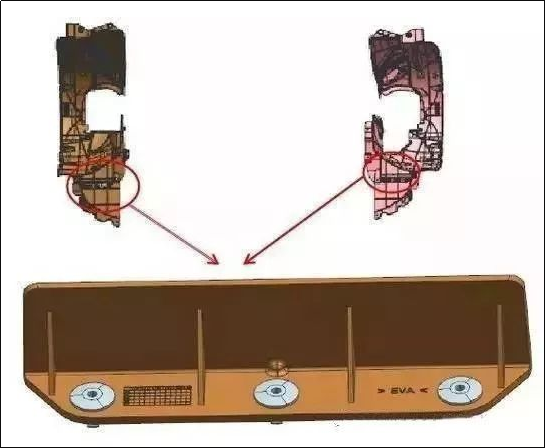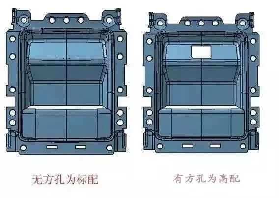 上图是仪表板激光弱化设备,设备会自动探测工艺实际输出状态,如果发现不合格,产品将不能取出,放置在独立的不合格品区域。同一件工作,如需做二次以上,采用“复制”方式来完成。上图是挡风板的左右件,设计一样(非镜像),通过不断优化减少零件种类,便于管理,减低错误的可能性。高低配零件在细节上有区别,便于操作人员区分及后续装配。