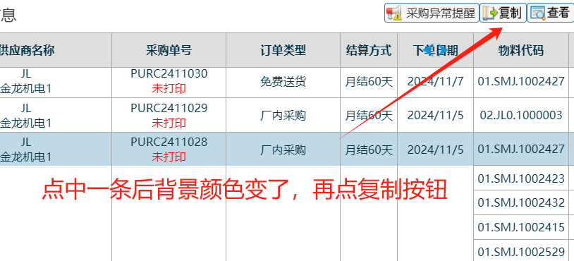 :点晴ERP-如何复制采购订单![]() 点击进入 如下图: