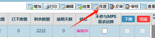 点中状态为待审核中的一条单号后,点击作废按钮