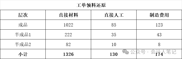将半成品还原为料工费,结果如下: