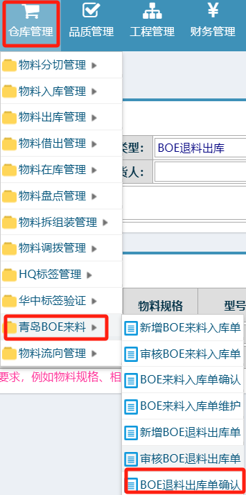 点晴模切ERP-驳回BOE退料出库单