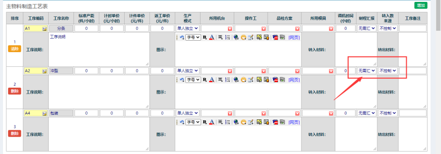 关键信息录入说明,制程汇报设置与转入数来源设置