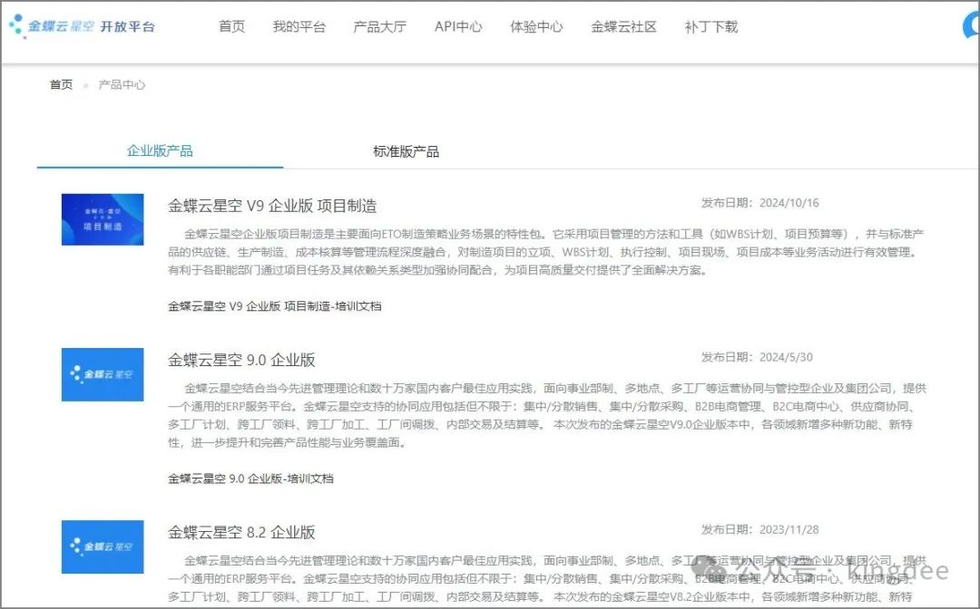 本文以安装金蝶云星空V9企业版,并升级9.0.0.20241121版本为例,描述整个金蝶云星空测试环境的搭建过程,方便客户更加快速准确的搭建测试环境。 主要应用场景为: 1、 金蝶云星空公有云环境搭建线下测试环境; 2、 补丁升级前,先搭建金蝶云星空测试环境测试升级; 3、 开发、对接等测试需求下的金蝶云星空测试环境搭建。 2.金蝶云星空测试环境搭建过程2.1 下载金蝶云星空V9安装包1、 DVD包下载路径 点击产品介绍说明,进入产品详细介绍页面,点击【下载安装包】进行安装包下载。