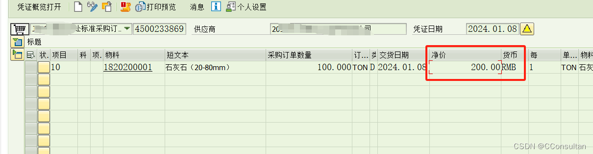 修改已收货采购订单的价格会带来什么影响** 以下为测试数据,原采购订单净价为100RMB