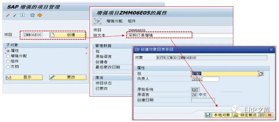 备注:默认带出金额是收货金额,不是采购订单上的当前净价计算的金额。 不同公司财务结算要求不同,在很多项目中财务会要求发票金额必须按收货金额结算,但采购部门定价的业务要求是按凭证日期定价,不能按收货日期定价。 基于以上两点业务要求的情况下,就无法通过配置实现既满足财务又满足采购的业务要求,这时候就需要通过增强来满足这业务需求。 解决上面业务需求的增强实施方案: 针对上面业务需求,下面详细介绍通过实施二代增强方的式来满足这样业务需求的实施步骤。 增强名:MM06E005 出口:EXIT_SAPMM06E_012 具体操作步骤如下 1.创建增强项目(CMOD)