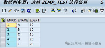 REPORT  ZHAIM_TEST01 NO STANDARD PAGE HEADING.TABLES ZEMP_TEST.DATA: IT_ZEMP TYPE STANDARD TABLE OF ZEMP_TEST,          IW_ZEMP TYPE ZEMP_TEST.PARAMETERS P_DEPT TYPE ZEMP_TEST-EDEPT.START-OF-SELECTION.AUTHORITY-CHECK OBJECT 'ZEMPOBJ00'        ID 'ZEMPDEPT' FIELD P_DEPT        ID 'ACTVT'  FIELD '03'."用户使用程序,想要查询部门的员工信息,"通过authority-check object 来进行权限检查,ID是字段名,field是要检查的"'actvt': 01 创建,02更改,03查询,06删除IF SY-SUBRC <> 0.  MESSAGE S001(00) WITH '您没有权限查看此数据' DISPLAY LIKE 'E'.ELSE.  SELECT *    FROM ZEMP_TEST    INTO TABLE IT_ZEMP   WHERE EDEPT = P_DEPT.  LOOP AT IT_ZEMP INTO IW_ZEMP.    WRITE / IW_ZEMP.  ENDLOOP.ENDIF.