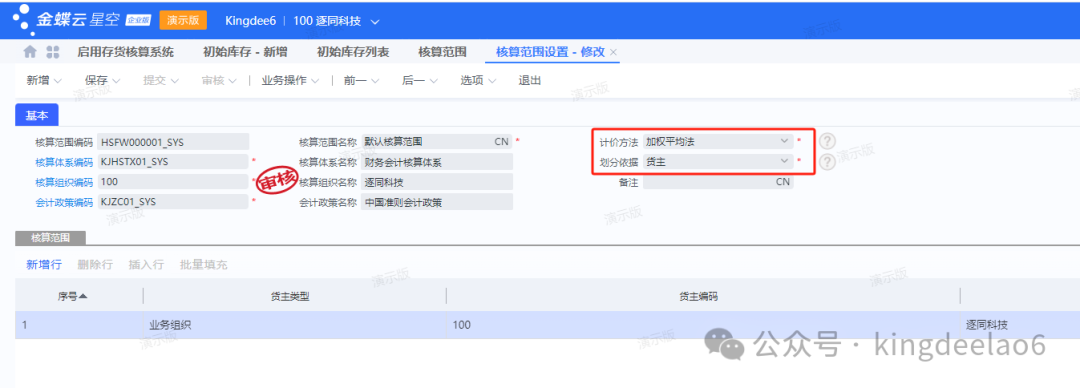 - 核算范围设置:一般企业都采用加权平均法(月末一次加权平均),一般中小型企业都对存货的划分范围都为货主,还有货主+仓库在一些管理比较细致的企业也会用到,其他的用到较少。
