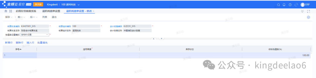 - 物料残值率维护:此功能启用存货核算模块即可生成,然后再去修改,一般默认都不改。