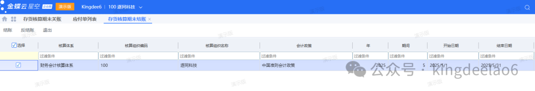 - 存货核算期末结账:核对存货报表之后就可以进行操作,结账会校验一些项目,根据系统的逻辑去操作就可以了。