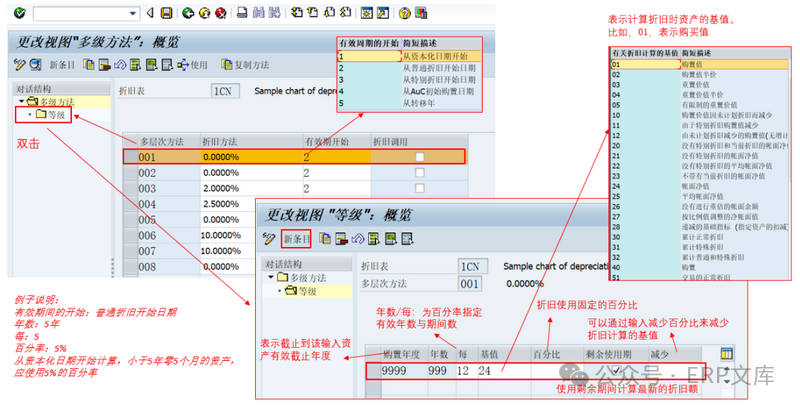 多层次方法允许您为不同的资产类型或使用目的设置不同的折旧规则。例如,您可以设置一个折旧码用于年度折旧,另一个折旧码用于半年度折旧。这种设置对于共享资产或特殊用途资产非常有用。