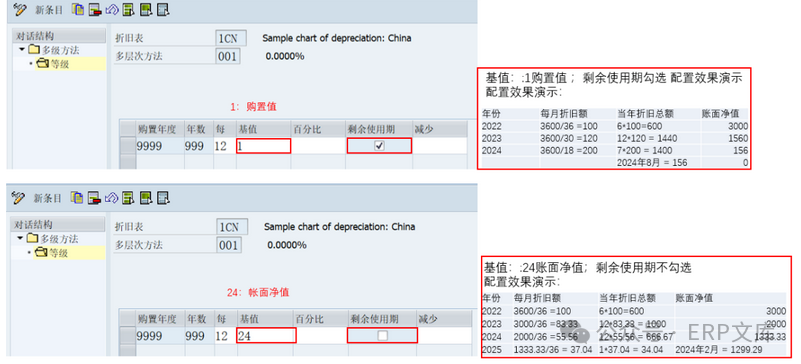 基值 剩余使用期的组合对应的折旧计算逻辑