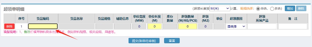 补充说明:明细模式有单选和多选的,选了多选的话,可以多行勾选要领取的物料