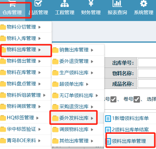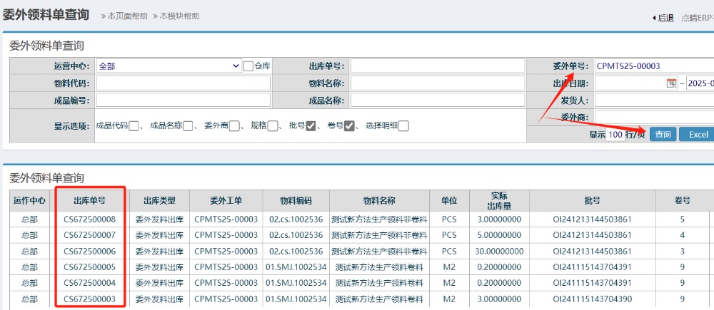点晴模切ERP-查询委外工单发料的出库单号-操作教程
