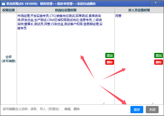 更改后点击“保存”按钮,此权限对应的岗位或人员就会立即生效了。