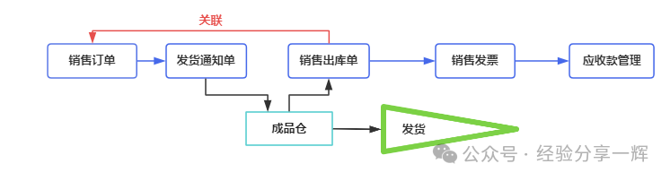 注意:(发货通知单)只是提醒作用,单据是从仓库的(销售出库单)关联回(销售订单)起的订单出库的流程