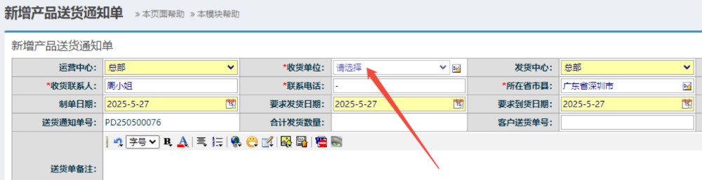 :点晴ERP-新增送货单时选完客户后客户名称没有显示