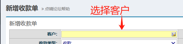 首先选择要收款的客户,点击黄色框进行选择