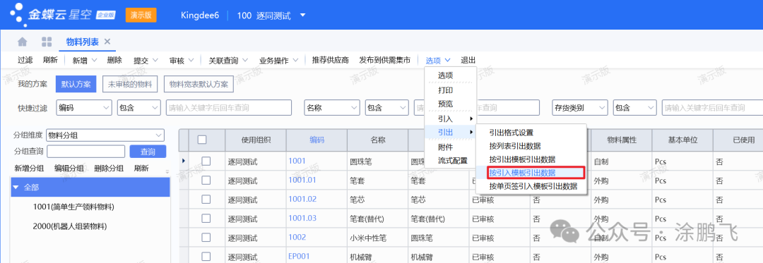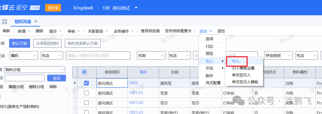 • 接下来我们以物料的导入作为案例来表述下数据和单据的导入导出过程。