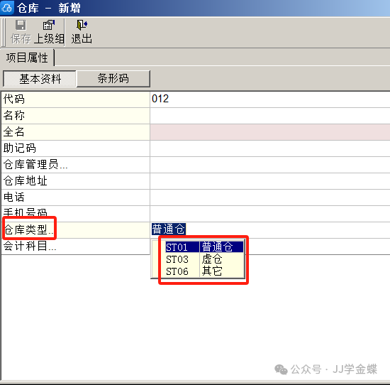 在金蝶 KIS 云·专业版 V16.0 中预置了三种仓库类型: