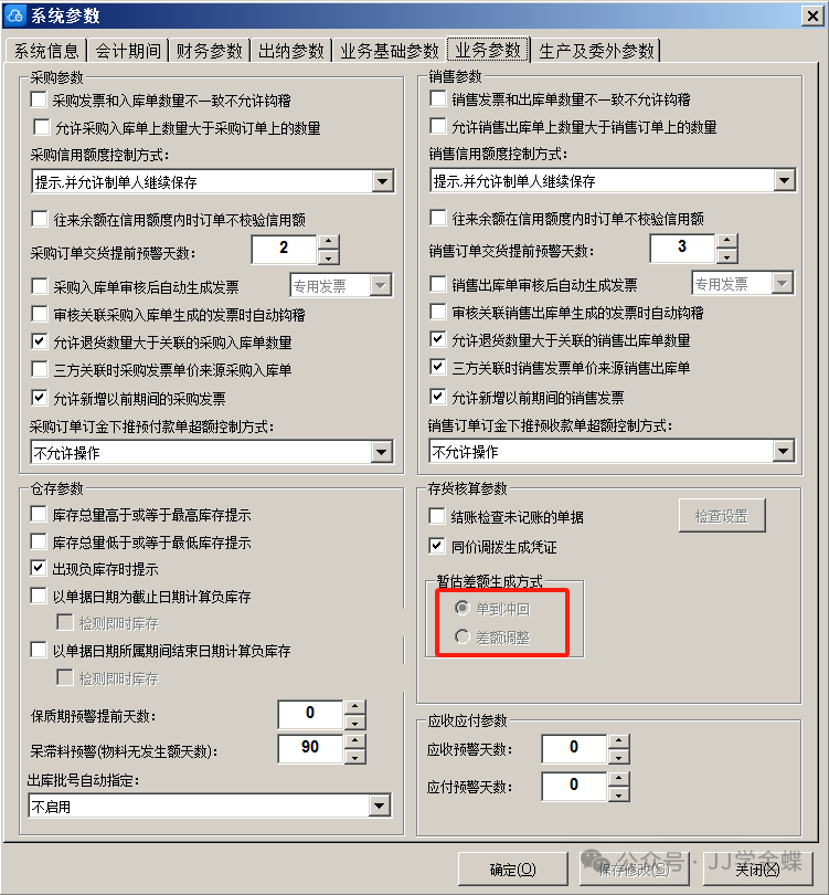 在金蝶 KIS 云·专业版 V16.0中提供两个方式:单到冲回和差额调整。设置以后不允许进行修改。