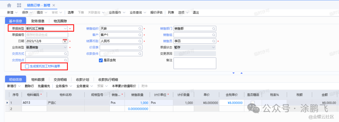 [点晴模切ERP]金蝶云星空销售—详解受托加工业务流程(含生产)