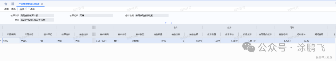 成本计算完毕之后,可查询该业务利润情况,如图所示: