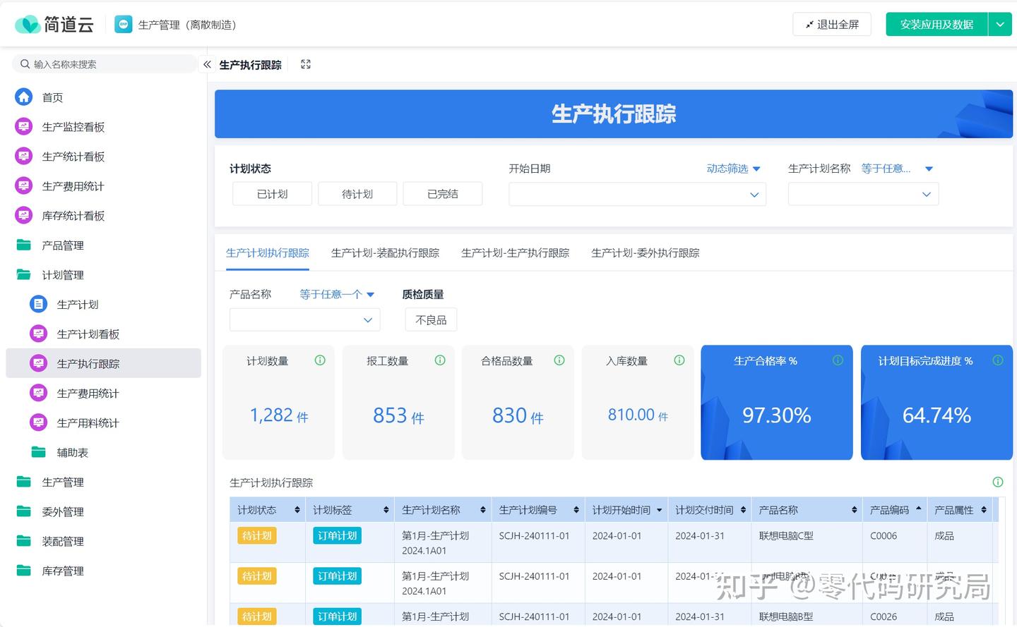 这五个关键因素统称为“4M1E”。有时,人们还会加入一个“测”(Measure),形成“5M1E”。 ![]() 以上概念突出了影响制造业的五个主要因素,而通过实施MES(Manufacturing Execution System,制造执行系统)系统,企业能够实时监控和管理这些关键因素,确保产品质量,并能够快速适应不断变化的环境条件。 MES系统的开发便是针对制造型企业的生产运营与生产管理而服务的。它是一种集成了计划管理、生产管理、库存管理、质量管理等核心管理模块的系统。通过实施MES系统,企业能够实现生产过程的实时监控、生产数据的实时采集和分析,以及生产任务的动态调整,从而提高生产效率、降低生产成本、保证产品质量,并提升企业的市场竞争力。 二、MES系统的功能以下功能讲解及图示均来自于简道云MES系统,进入链接,即刻体验>>>erp管理系统-生产管理系统-仓库管理系统-采购管理系统 1、MES系统的核心功能——必须要有MES系统的核心功能是指MES系统能够为企业提供的最基本的管理功能,需要涵盖最基本的生产管理要素,包括生产管理、计划管理、技术管理、库存管理等。这些功能构成了MES系统运行的基础,旨在助力企业高效执行生产计划,合理分配资源,从而提升生产效率与质量,减少成本支出,并增强企业的市场竞争力。 (1)生产管理 生产管理涉及对制造业生产流程的全方位协调、规划、控制、监督和持续优化。这一过程至关重要,因为它确保了生产活动能够高效、有序地进行,同时满足质量与成本目标。