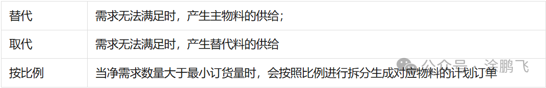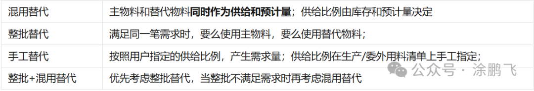 替代主料:用于在MPS/MRP计算时,按照替代主料的供给来判定是否产生替代