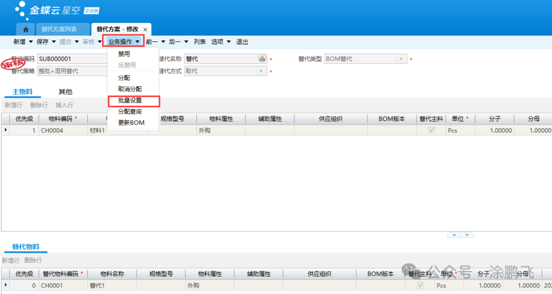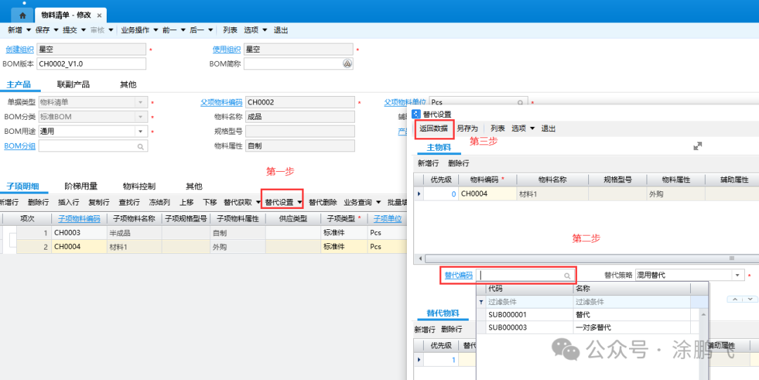 物料清单替代设置