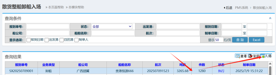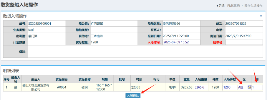:点晴PMS-散货卸船入场-操作流程