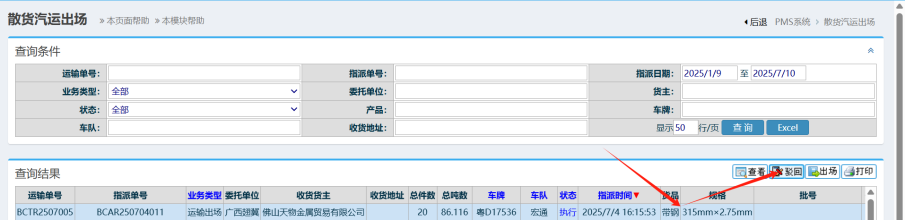 :点晴PMS-散货汽运驳回-操作流程![]() 1.散货汽运出场-点击进入 如下图: