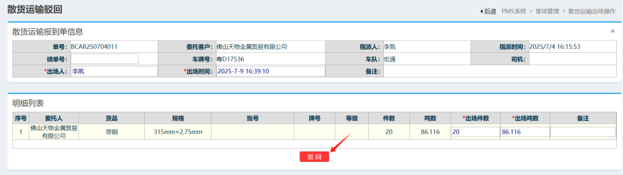 [点晴模切ERP]点晴PMS-散货汽运驳回-操作流程