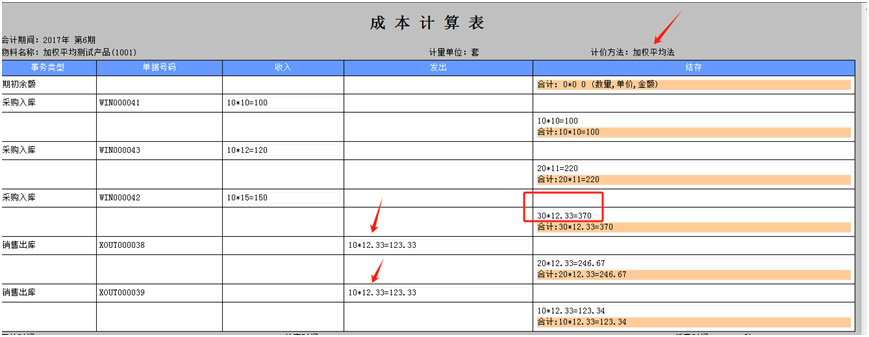 1.加权平均法 1.1 计算方法:三次入库的金额合计/三次入库的数量合计 1.2 计算结果:(100+120+150)/(10+10+10)=12.33 两次出库成本都是12.33