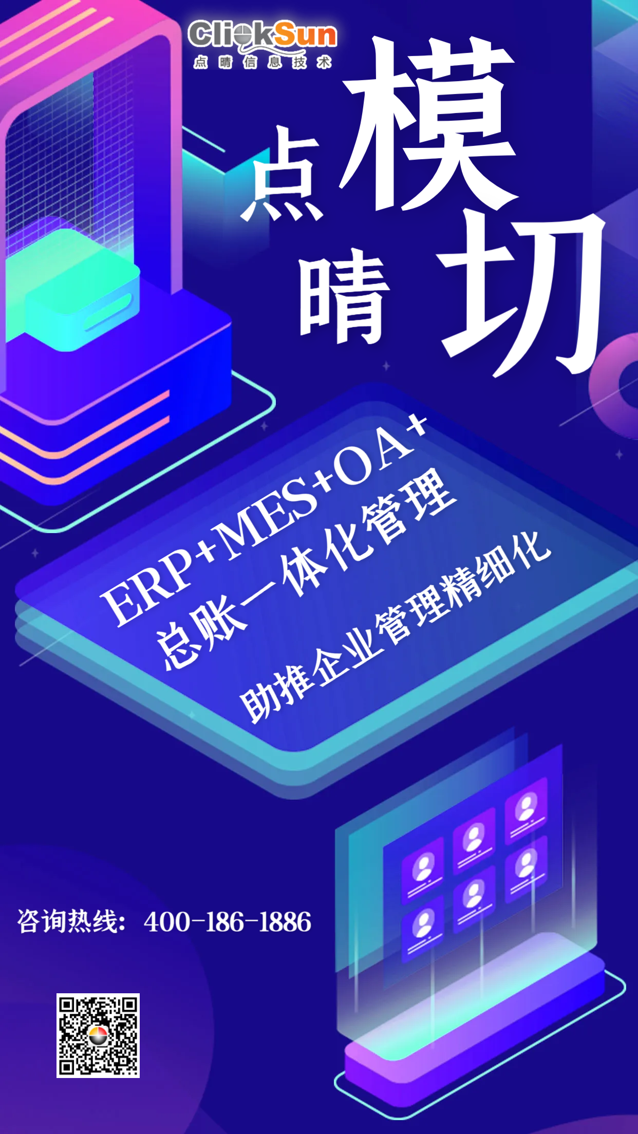 点晴模切ERP系统(http://moqie.clicksun.cn22年专为模切行业打造,以智能排产、实时追踪、精准成本核算为核心,助力模切企业实现生产精细化管理,让您的生产运营更智能、更透明!