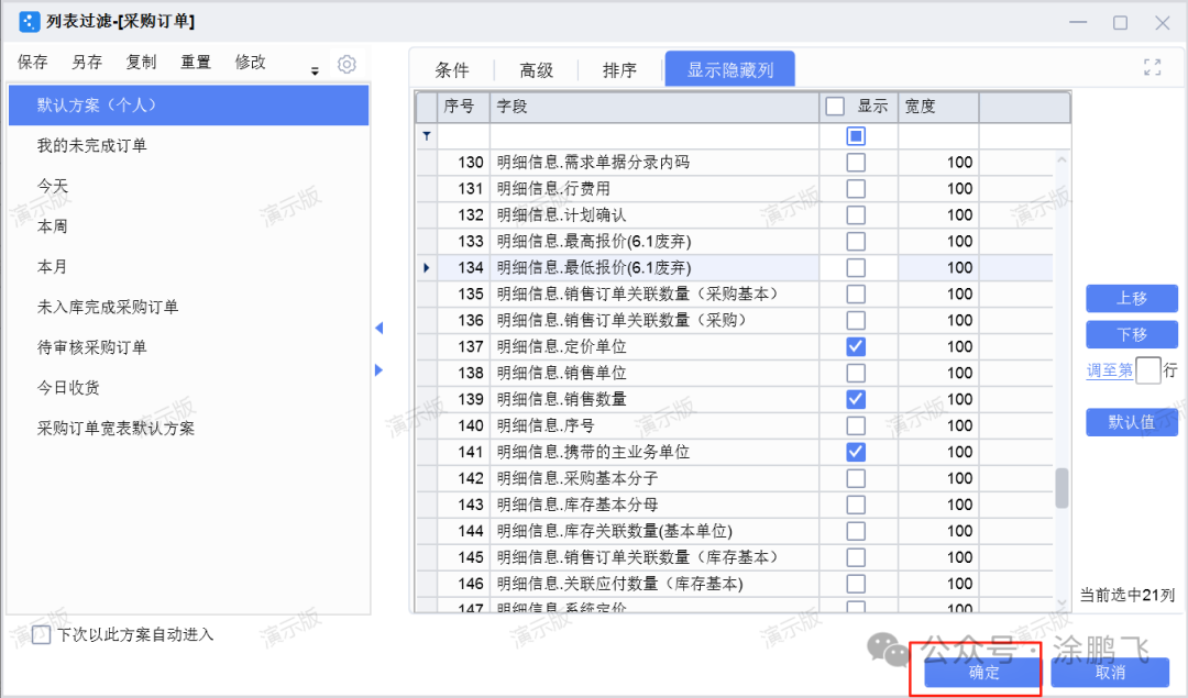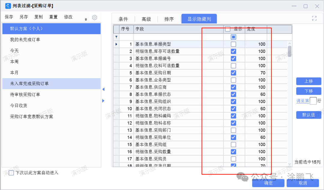 以上采购订单列表,显示的字段不是我们理想的列表字段,有些需要,有些不需要。
