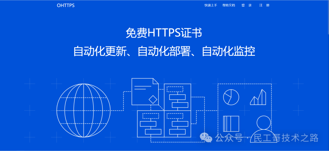acme.sh 是一个知名的用于申请 Let's Encrypt 证书的开源项目,项目地址:https://github.com/acmesh-official/acme.sh,也是属于脚本类型,有比较详细的文档,支持自动化更新和自动化部署。 唯一缺点,如果有更新后自动部署至多个节点的需求的话,acme.sh无法满足。如果你有一定的命令行使用经验,acme.sh使用起来还是非常方便,强烈推荐!关于更新后自动部署至多个节点的需求,建议使用下面介绍的ohttps.com。 freessl.cn