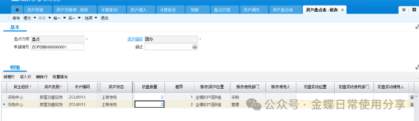 实际盘点完之后,填写资产盘点表,选中本次盘点的盘点表,填写盘点数据,并提交审核。